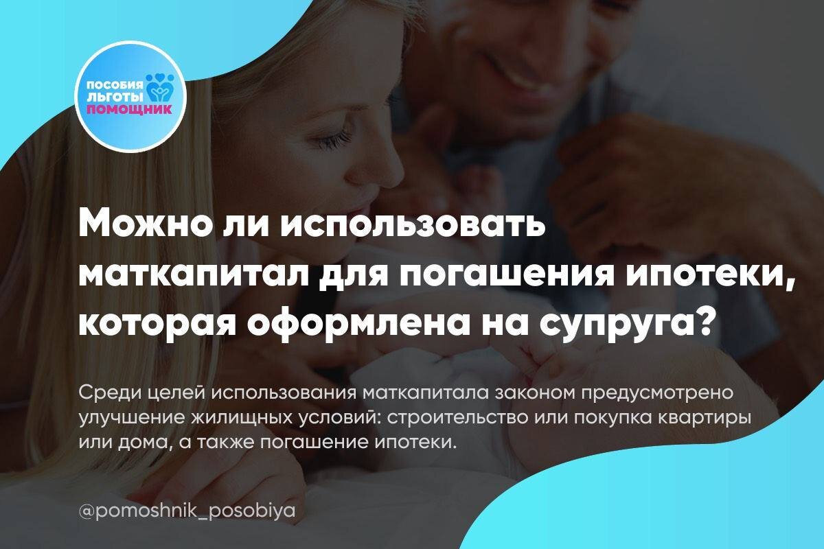 Можно ли использовать материнский капитал в погашения ипотеки которая оформлена на супруга