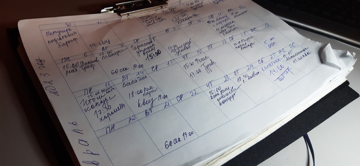 Когда то с 1999 года по 2002 год я работала заместителем директора по организационно - массовой работе в Детско-юношеском турклубе. Моя задача была - организация досуга детей в выходные дни. Директор ДЮТК Котласа Михеев Сергей, однажды на планерке сказал: на следующей неделе прийти всем с планами работы на год. Я села делать план. Мероприятия выдумала из головы. Сначала написала "основные направления работы организационно-массового отдела. Затем долго думала, как создать систему и составила направления деятельности по месяцам. У меня получились месячники: Я системный человек. Мне важно знать, что у меня будет на месяц вперед, а еще лучше сразу на год вперед, чтобы я могла более эффективно использовать свое время, больше отдыхать и все успевать. Я планирую до сих пор так, как это делала 23 года назад. Впервые я составила для себя план-сетку в 2000 году. Она у меня даже сохранилась. И если я хорошо спланировала день, я успеваю сделать очень много дел. Я пробовала вести планировщик,