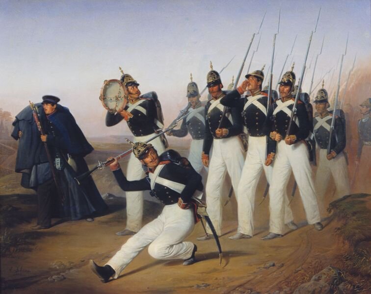 Возьмём для примера послужной список и жёлтый билет на бессрочный отпуск, который полагался нижним чинам Империи прослужившим менее 15-ти лет, Фёдора Александрова сына Александрова. Он происходил из крестьян села Борок, Рязанского уезда, Рязанской же губернии, и был принят в рекруты 11-го ноября 1853 года. В этих документах отмечено, что 14-го апреля 1854 года Фёдор Александров зачислен в 6-й батальон Тенгинского пехотного полка.