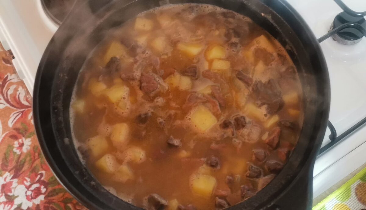 Все ингредиенты очистить и промыть. Печень, легкое и сердце очистить от жил, трубок, оставив только чистую мякоть. Нарезать небольшими кубиками. Картофель нарезать также не большими кубиками. Лук нарезать полукольцами. Чеснок нарезать небольшими, тонкими дольками. Казан поставить на огонь и разогреть. Добавить масло сливочное, растопить его. К сливочному маслу добавить чеснок, жарить 2-3 минуты (это для аромата). Затем извлечь из казана. Добавить в тоже самое масло немного лука и добавить подсолнечное масло. Жарить до образования золотистого цвета. К луку добавляем печень, все перемешать. Затем добавить к печени, легкое, все перемешать. Тушим все ингредиенты 10 минут. Далее добавляем сердце, все перемешать. Добавить соли по вкусу и все еще раз перемешать. Тушим все ингредиенты еще 10-15 минут. Добавляем остальной лук, все перемешать. Тушим все ингредиенты еще 10 минут. Выкладываем к мясу картофель. В казан налить воды (700-900 мл). Тушим на среднем огне до готовности картофеля (10-15