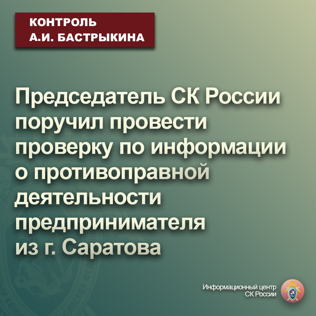 Председатель СК России поручил провести проверку по информации о противоправной деятельности предпринимателя из г. Саратова