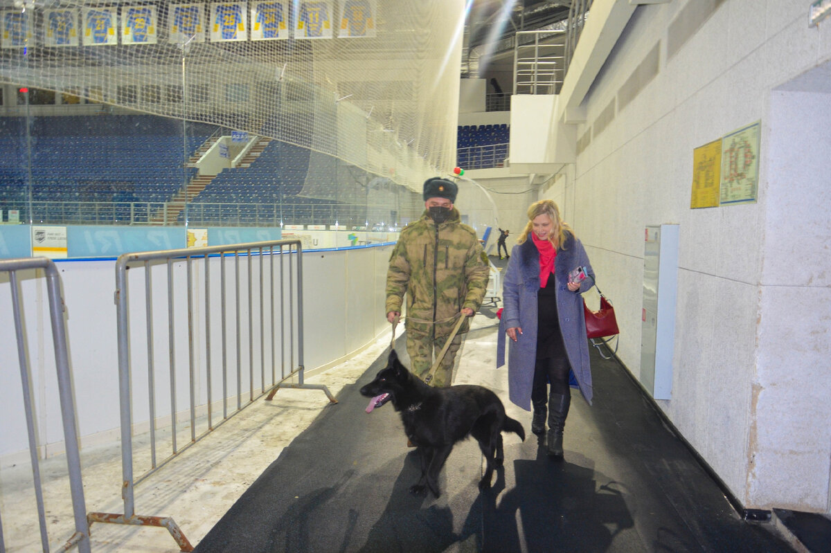Специалист-кинолог территориального управления Росгвардии и его служебная собака по кличке «Акула» продемонстрировали элементы по идентификации взрывчатых веществ, а также отработали обследование спортивного объекта.