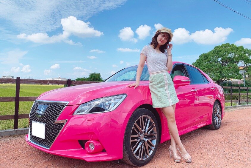 Она обожает розовый цвет и красит ногти, комнату и одежду в розовый цвет. Конечно, ее машина тоже розовая, она ездит на Crown ReBORN PINK, который продавался как специальная серия в 2013 году. Она купила его год назад, несмотря на неодобрение отца, который сказал: "Это очень красивая машина, но я бы хотел, чтобы ты не делала этого ......". На этот раз мы поговорим о настойчивом стремлении PI влиться в автомобильную жизнь, в совершенно уникальную для меня и других автолюбителей. «Crown ReBORN PINK» с его розовым цветом, который в то время был немыслим для роскошного автомобиля, стал предметом обсуждения в городе после выхода в эфир рекламного ролика с участием Нобунаги Оды и Хидэёси Тоётоми. Официальное название цвета кузова - "Momotaro", но он известен под прозвищем "Pinkura".