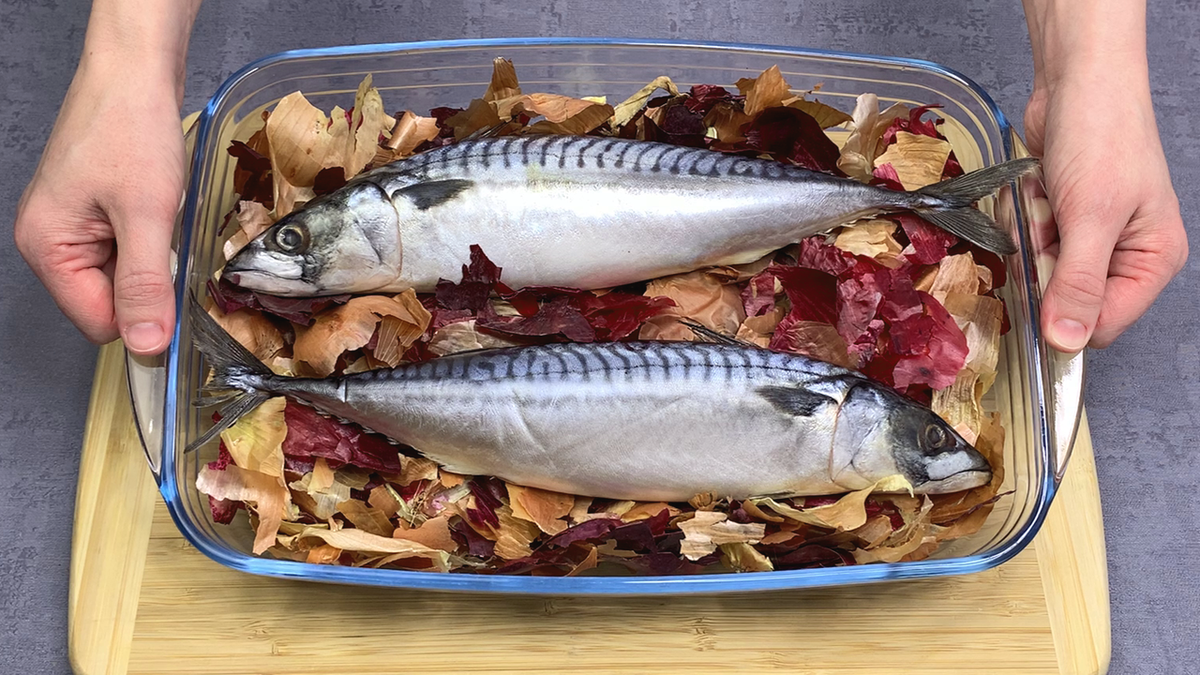 Беру скумбрию и много луковой шелухи: вкуснейшая закуска, просто бесподобна, рыба просто тает во рту (готовится очень просто)