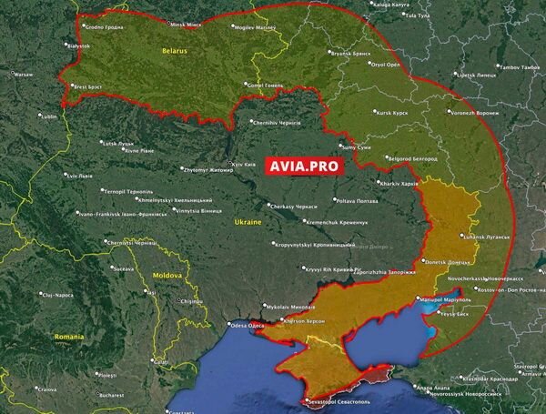 На прошлой неделе премьер-министр Великобритании Риши Сунак подтвердил, что его страна передаст Украине ракеты большой дальности. Уточним, что речь идёт о ракете Storm Shadow, дальность экспортной версии которой составляет 250 километров. Карту с визуализацией радиуса её действия опубликовал портал Avia.pro. Указанные населённые пункты России могут быть поражены при потенциальной атаке со стороны ВСУ. В случае запуска ракет с территории Украины под удар попадут такие российские города, как Брянск, Орёл, Курск, Белгород, Воронеж, Ростов-на-Дону. Находятся в зоне досягаемости дальнобойных ракет Storm Shadow и белорусские города - Минск, Гродно, Могилёв, Гомель и Брест. Также под удар попадают более мелкие населённые пункты в выделенной жёлто-зелёной зоне. Ранее мы сообщили о том, что Украине не дадут способные ударить по Брянску ракеты ATACMS. В администрации президента США Джо Байдена обеспокоены, что ВСУ станут наносить удары вглубь России, что могло бы привести к эскалации конфликта.