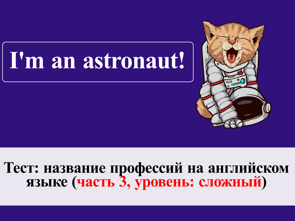 Здравствуйте, уважаемые читатели! На связи снова English Сats! Барабанная дробь! И вот он наш третий и заключительный тест по названиям профессий на английском языке. За плечами наших дорогих читателей остались первая и вторая части, где всё было не так уж и сложно. А сегодня перед вами стоит задача перевести на английский язык такие слова как "кондитер" и "сварщик". Уверены в своих знаниях? Тогда скорей листайте вниз, чтобы их проверить! Тест состоит из 10 вопросов, в каждом из которых может быть только один правильный ответ. Будьте внимательнее! Не будем вас долго задерживать! Поехали! Надеемся, что вас порадовал ваш результат! Спасибо, что были с нами! Не забывайте ставить лайки и подписываться на канал! Советуем вам также пройти тесты из нашей подборки, чтобы проверить свои знания и по другим темам: #english cats #english #английский язык #английскийонлайн