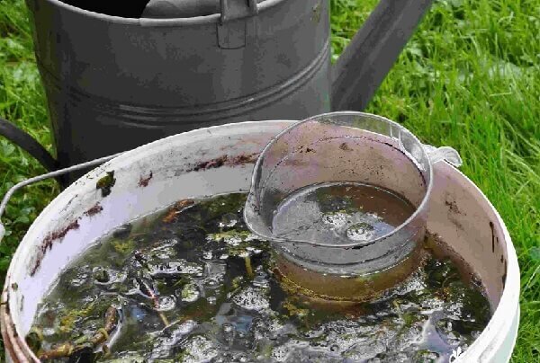 На следующий день после приготовления, на поверхности образуется пенная шапка, поэтому содержимое перемешайте, и снова закройте емкость. Срок готовности удобрения зависит от окружающей температуры. Чем теплее, тем быстрее оно будет готово. Обычно летом уже через 3-4 дня настой будет готов для применения.