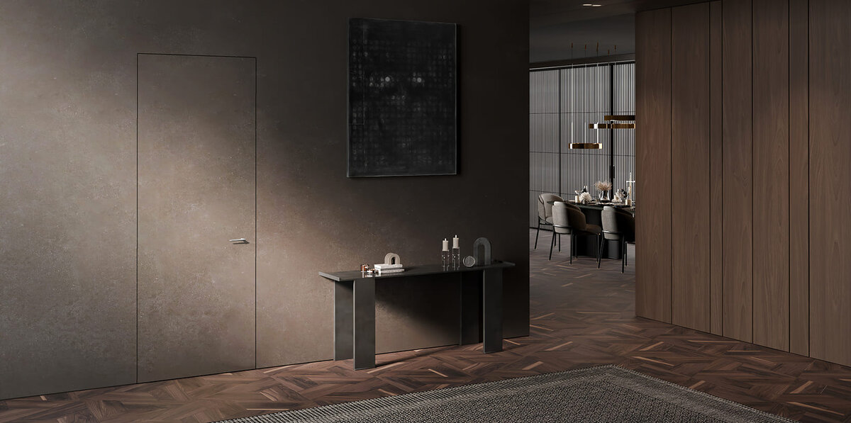Ох уж эти современные тенденции...Что только не придумают дизайнеры, что бы сохранить как можно больше пространства для своих фантазий и создания неповторимых дизайнов вашего интерьера. И придумали дизайнеры, что дверь будет скрытой, вот вроде она есть дверь, а вроде ее и нет, спрятали..а куда спрятали мы сейчас расскажем. Изначально такие двери использовались, что бы скрыть такие помещения как подсобку, кладовку, дверь под лестницей, ну и любую другую дверь, которую хотелось скрыть от лишних глаз. Такие двери изготавливаются в покрытие грунт. Под финиш их можно красить в цвет стен, клеить на них обои, декоративную штукатурку или любое другое покрытие для отделки стен. На сегодня выбор скрытых дверей очень обширен. Они бывают с алюминиевой кромкой, или без. Шпонированные полотна, в сочетании со стеновыми панелями (о них будет отдельная статья). И многие другие варианты покрытий, такие как: лакобель, зеркала, камень, эмаль. И сегодня мы уже принимаем заказы не на одну-две скры