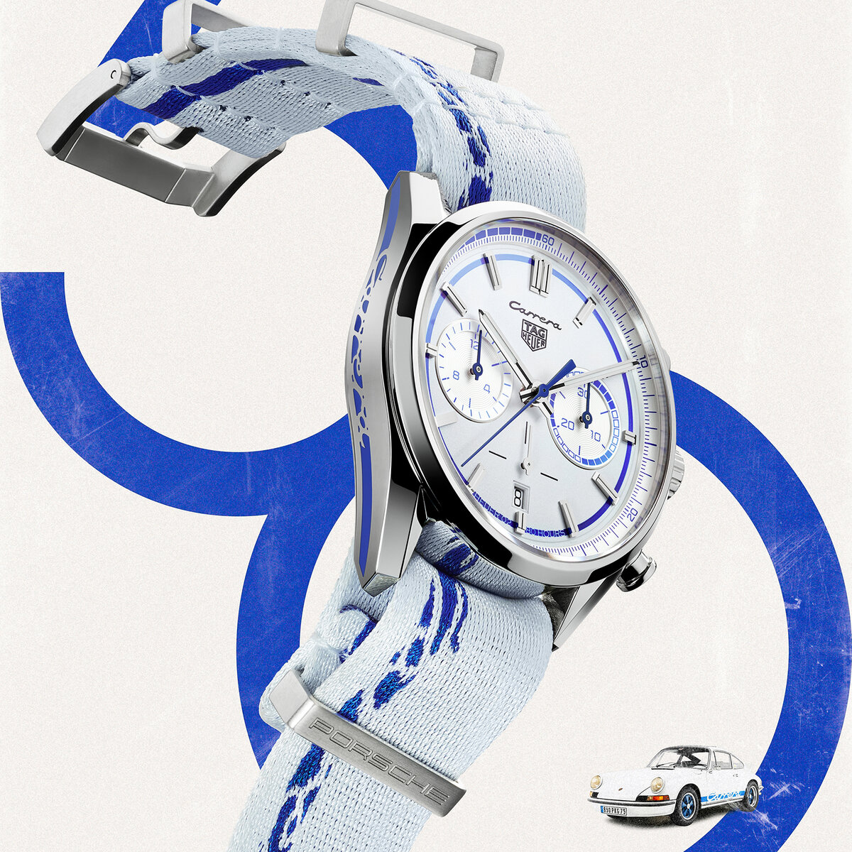 Porsche 911 Carrera RS 2.7, ознаменовавший завершение первого поколения автомобилей серии 911, взорвал рынок. В то время это был самый быстрый автомобиль немецкого производства и самый мощный из своих собратьев серии 911, предназначенных для уличной езды. Помимо легкости и аэродинамики, он стал первым дорожным спортивным автомобилем, оснащенным передней и задней накладками (позднее их стали называть «спойлерами»), которые повысили устойчивость на дороге и увеличили максимальную скорость. Передние и задние колеса имели разную ширину, что позволяло увеличить скорость вхождения в поворот и улучшить торможение. RS 2.7 был шоссейным автомобилем, который позволял владельцам участвовать в автогонках. Абсолютно те же принципы легли в основу Heuer Carrera — хронографа, сконструированного для безупречного отсчета времени и удобства считывания показателей в условиях высокоскоростной гонки, но при этом достаточно элегантного, чтобы удовлетворить каждого ценителя изысканности в повседневном вождении.