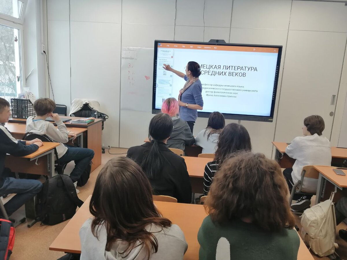 Лекция «Немецкая литература средних веков» предназначалась для 7-Лингвистического класса, но анонс данного мероприятия привлёк не только заинтересованных учащихся из других классов, но и наших учителей. Сложный материал лекции был доступно преподнесен учащимся благодаря мастерству лектора. Получился интересный диалог вуза и школы. Подобное сотрудничество бесценно.