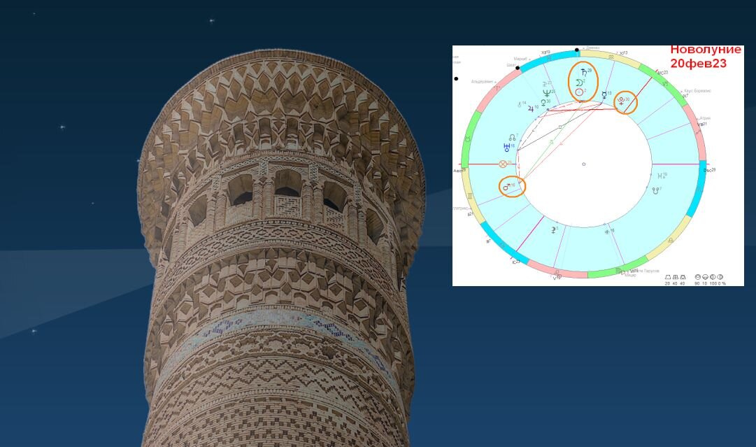 Рисунок сегодняшнего Новолуния довольно мягкий, в особенности по сравнению с предыдущими лунациями. И в целом мы можем ожидать более спокойных событий в мире в этот месяц. Ведь в прошедшем лунном месяце были и сильнейшее землетрясение в Турции, с подвижкой земной коры, и серия техногенных катастроф в США, и взрывы газа в жилых домах РФ. Предстоящий месяц будет тихим, ибо рядом со светилами новолуния находится Сатурн — и велико его замораживающее, тормозящее воздействие. Однако вторая половина месяца, начиная с Полнолуния 7 марта 2023 будет более сложной. Особенно потому, что напряжения будет устраивать хозяин войн планета Марс. Завершающий период Важно понимать, начинающийся лунный месяц является ЗАВЕРШАЮЩИМ ПЕРИОДОМ для очень многих процессов. Это хорошее время чтобы доделать дела и поставить точки. Потому что потом на это времени уже не будет! Если что-то заканчивается — оно должно закончиться, если отмерло — должно быть отрезано. Как в той пословице: «уходя — уходи!» Что же за циклы