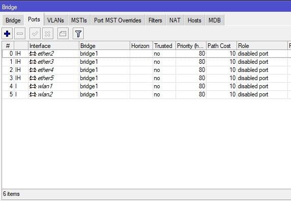 Настройка Wi-Fi 2Ghz в MikroTik Схема сети самая простая – интернет приходит на ether1. Интерфейсы ether2-5, wlan1 и wlan2 находятся в bridge 192.168.0.1/24. Перед настройкой точки доступа рекомендуется прошить до последней прошивки. Это делается, чтобы снять установленные ограничения с завода для импорта в Россию, а также появился список стран в выпадающем меню Country. Взглянем на наш bridge1. Переходим в Wireless и видим, что интерфейсы находятся в выключенном состоянии. Пока не включаем их. В конфигурации будут созданы 2 сети на разных частотах с одинаковым паролем аутентификации. Для того чтобы задать пароль аутентификации нужно создать Security Profile. Укажем корректные значения: Сохраняем и открываем интерфейс wlan1. Включаем Advanced Mode. После включения дополнительного режима появляются скрытые возможности. Нас интересует самая главная и важная вкладка Wireless. Зададим основные параметры: Отдельного внимания заслуживает параметр Frequency (частота). Задать параметр