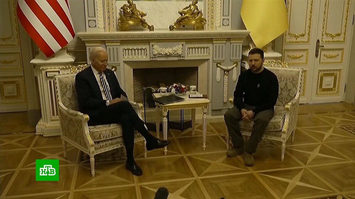 [ Смотреть видео на сайте НТВ ] Американский президент Джо Байден на пресс-конференции в Киеве сообщил, что США вместе с союзниками передадут Украине около 700 танков, тысячи бронемашин и свыше 2 миллионов снарядов. Вашингтон и его союзники по всему миру пообещали передать Украине около 700 танков и тысячи единиц другой бронетехники. Об этом сообщил президент США Джо Байден на пресс-конференции по итогам встречи с Владимиром Зеленским в Киеве. Джо Байден, президент США: «Все мы обязались поставить около 700 танков и тысячи бронемашин, тысячу артиллерийских систем, более двух миллионов артиллерийских снарядов, более 50 передовых реактивных систем залпового огня и системы ПВО». По словам Байдена, эти поставки вооружений необходимы, чтобы обеспечить оборону Украины. Также глава Белого дома отметил, что Вашингтону удалось создать коалицию стран от Атлантического океана до Тихого, в которую вошли больше 50 государств. На брифинге, который состоялся по итогам переговоров с Байденом, Владимир
