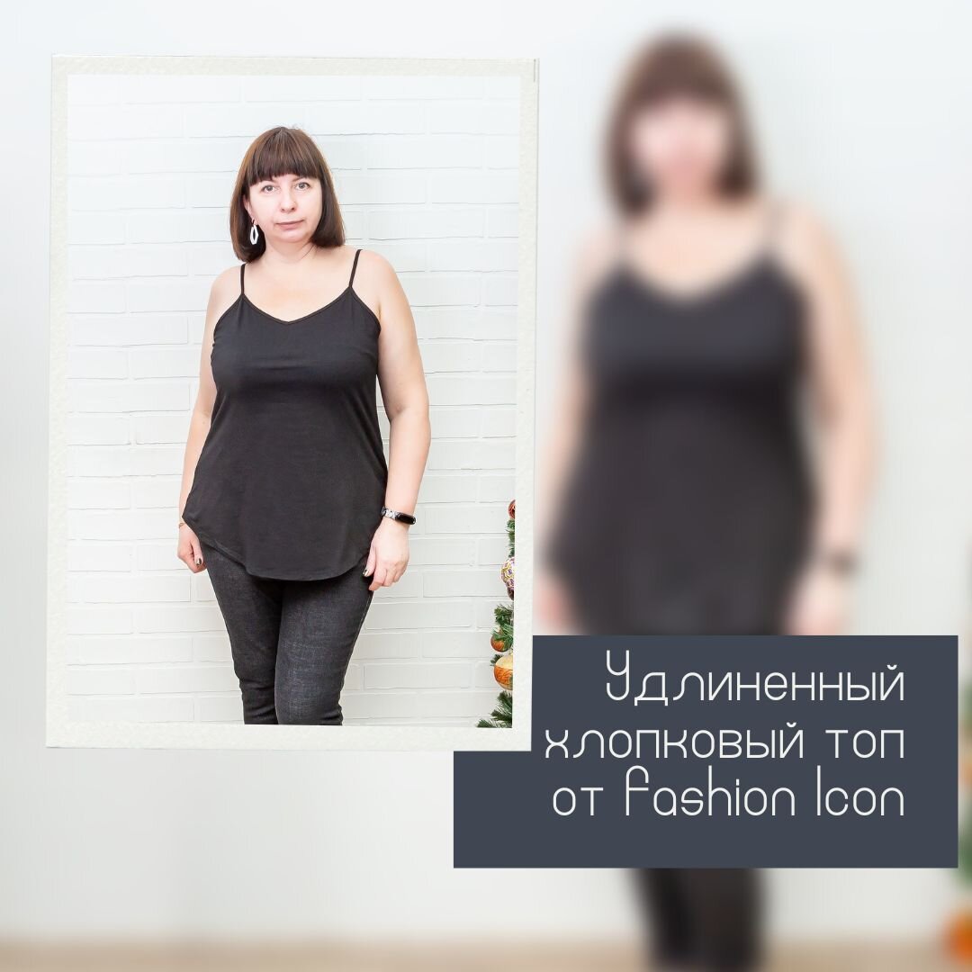 У продавца модель представлена в трех цветах и размерном ряде до 4XL. Я выбрала черный топ в размере 0XL.
