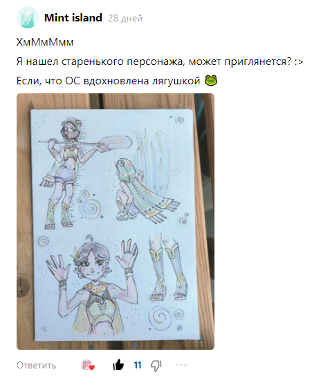 Привет-привет-привет! Я вас та-а-ак рада видеть! Хоть я вас и не вижу... Но я все равно рада! Я, хоть и с опозданием, но принесла обещанных ваших персонажей, которых я бессовестно украла и делала с ними... всякое такое! Хе-хе-хе... Хочу сразу пойти с козырей и поделиться очаровательной девочкой-лягушкой, которая покорила мое сердце с первого взгляда. До этого момента, я в такое не верила, но любовь с первого взгляда существует! Как только я увидела эту девочку в комментариях я сразу такая "да! Мне это надо!". Но как бы я не старалась сделать милашку-очаровашку, вышла все-равно какая-то повзрослевшая версия этой девочки. Пожалуйста, не топи меня в болоте с лягухами, хозяин персонажа. Я плавать не умею :( Да-да-да-да. Я все еще болею и просто не могу пройти мимо ушастых эльфов. На самом деле. у меня возникло ощущение, что я Рисую Тосю, но фиолетовою (моя ОС), так что я тут как родная просто вписалась, ха-ха! С ноги, так сказать, вошла. Получила удовольствие от процесса - хозяину эльфийк