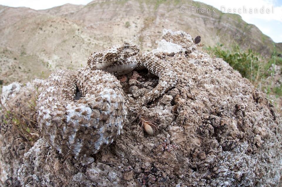 Хотя хвост паукообразной змеи является ее наиболее характерной особенностью, она также является мастером обмана в других отношениях. Ее тело маскируется, чтобы слиться со скалистой пустынной местностью, где она обитает, а ее поведение также приспособлено для того, чтобы помочь ей избежать обнаружения хищниками.