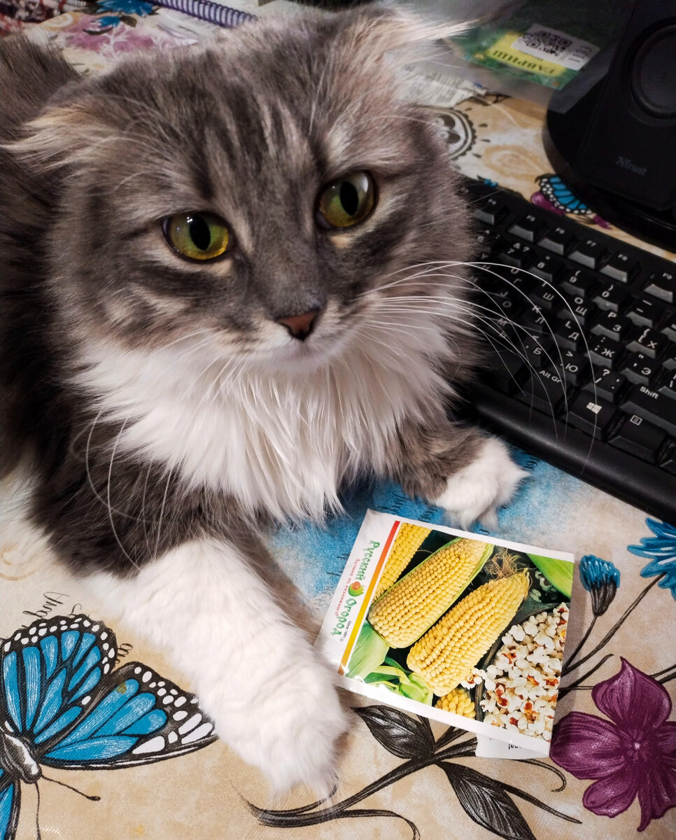 Посмеялись мы от души, после чего я накидала в корзину привычные, проверенные сорта томатов, огурцов, зелени и всякой огородной разности, предоставив выращивание замысловатых новинок тем, кого не пугают "Йетина мать" и "Сварло". Последними в корзину полетели всякие фасоли, (Люблю спаржевые сорта! Замороженных хватает на всю зиму), горошки и подсолнух. Остановилась на картинке с кукурузой. Я иногда высеваю ее дома в плошке - девкам на зелень. У нее зелень более сочная, чем у овса. На даче сажаю больше для баловства. Проще купить кукурузные початки в магазине или на рынке. Просто нравится мне, когда в конце огорода возвышаются рослые её стебли, увенчанные метелками соцветий.