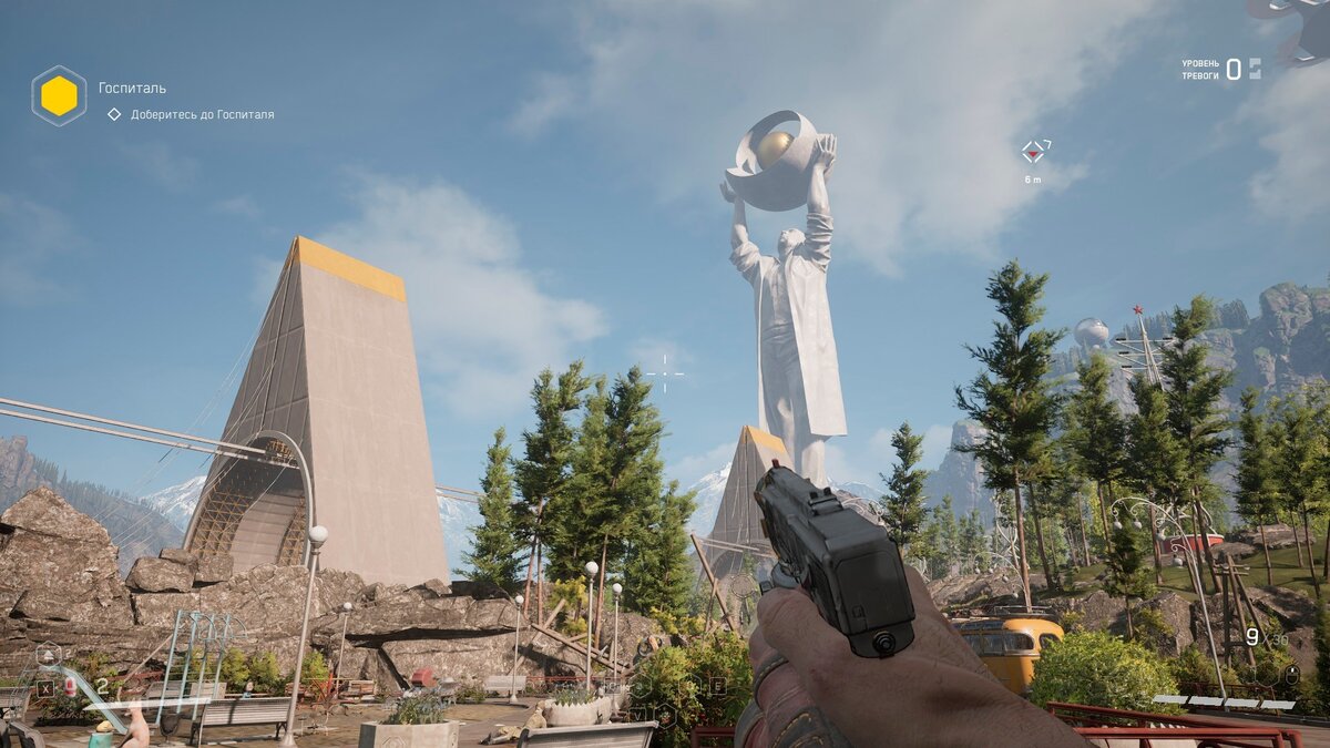 В Atomic Heart нет места унынию типичного постсоветского дворика и депрессивным серым «панелькам», хотя локаций с таким вайбом хватает.