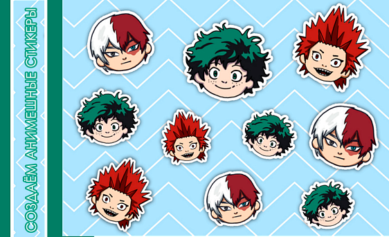 Хочется создать свой стикер-пак и клеить любимых персонажей куда угодно? Рассказываем, как нарисовать и распечатать собственные стикеры. Вы можете нарисовать что угодно, или взять в качестве референса уже что-то известное (но в этом случае не забывайте про авторское право!). Мы решили взять за основу аниме «Моя геройская академия». Для создания стикер-пака (то есть набор наклеек на одном листе в едином стиле) нам понадобятся: графический планшет XPPen, любой удобный и привычный для вас графический редактор (я буду пользоваться Adobe Photoshop), подходящие референсы. Планшет взяла совсем маленький и простенький - XPPen Deco mini 4. Даже такая малютка (размер всего 178,2x125 мм при толщине 8 мм) легко справится со стоящей сейчас перед нами задачей, у нее для этого есть все необходимое: 8192 уровня чувствительности к нажатию и 4 кнопки для настройки горячих клавиш. Скажу по секрету, я часто беру его с собой и подключаю к смартфону прямо где-нибудь в дороге – зарисовываю людей и окружающий