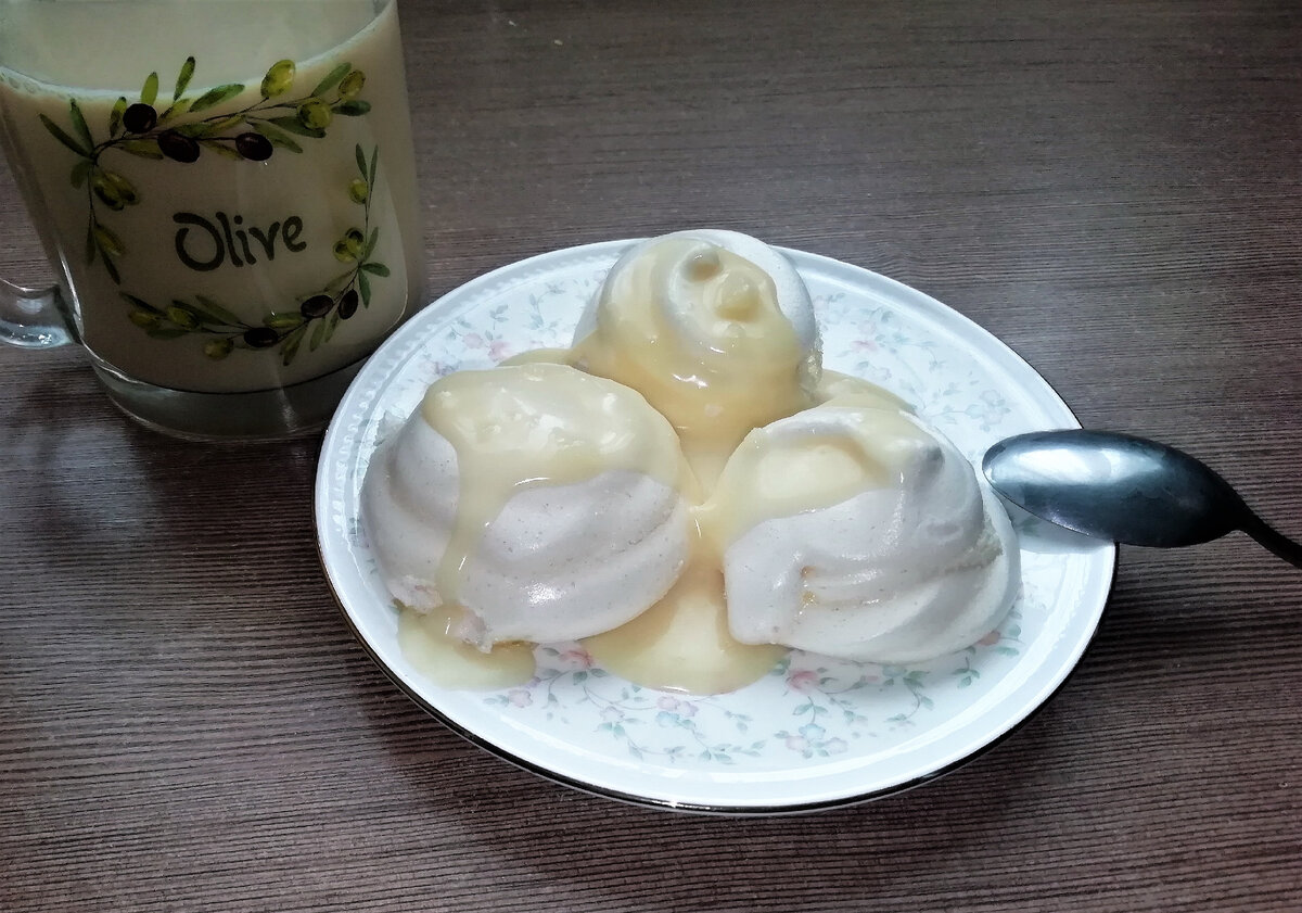 В семь часов мы выпили чай с тортиком безе, который еще посыпали грецкими орехами. На этот раз я положила себе две небольшие безешки.