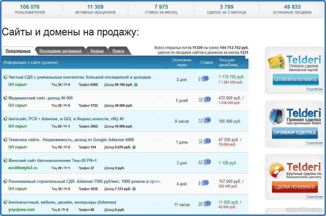 Телдери — место покупки и продажи сайта Необходимые вложения: выбрать нишу и цену за сайт. Важно, чтобы сайт был с трафиком и его окупаемость была в районе 12-24 месяцев. Покупаешь сайт, начинаешь писать контент или делегируешь этот процесс. Чем больше сможешь привлечь трафика с поисковых систем, тем больше заработаешь на партнёрках или на продаже сайта. Вложения в покупку сайта могут разнится — от 10 000 до 10 000 000 рублей. Формат дохода: перепродажа сайта с наценкой, заработок на партнёрках. Купить сайт и продать дорого? Не вопрос. На платформе Телдери реально купить доходный проект и вести его, монетизируя его партнёрками или контекстной рекламой. Продать сайт всегда успеешь, правда рекомендую нарастить больше трафика, забрать деньги с ниши и потом только его продавать. Сколько приносит заработок: от 50 000 рублей до 1 000 000 руб и выше. Возможен пассивный доход.