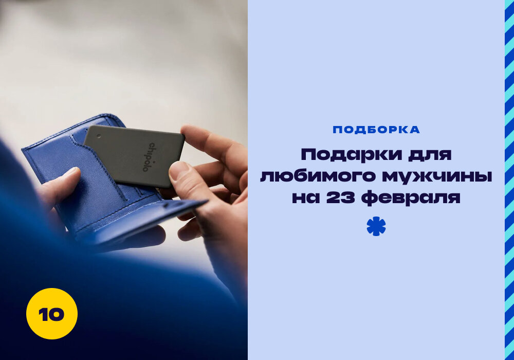 Легкие и прочные, они надежно защищают руки, обеспечивая комфорт и баланс во время быстрых движений. Эргономичная рукоятка и фиксированный большой палец позволяют правильно расположить кулак при ударе, чтобы избежать травм. 2. Портплед из экокожи Аксессуар для деловых поездок. Благодаря портпледу можно брать в командировки любые костюмы, не опасаясь, что они могут помяться. Продуманная конструкция позволит легко упаковать костюм и с комфортом отправиться в путешествие. Идея практичного подарка любимому супругу. 3. Умная карта-трекер Chipolo CARD Spot Тонкая карта прекрасно разместится в портмоне или картхолдерах. Работает с приложением "Локатор" на устройства