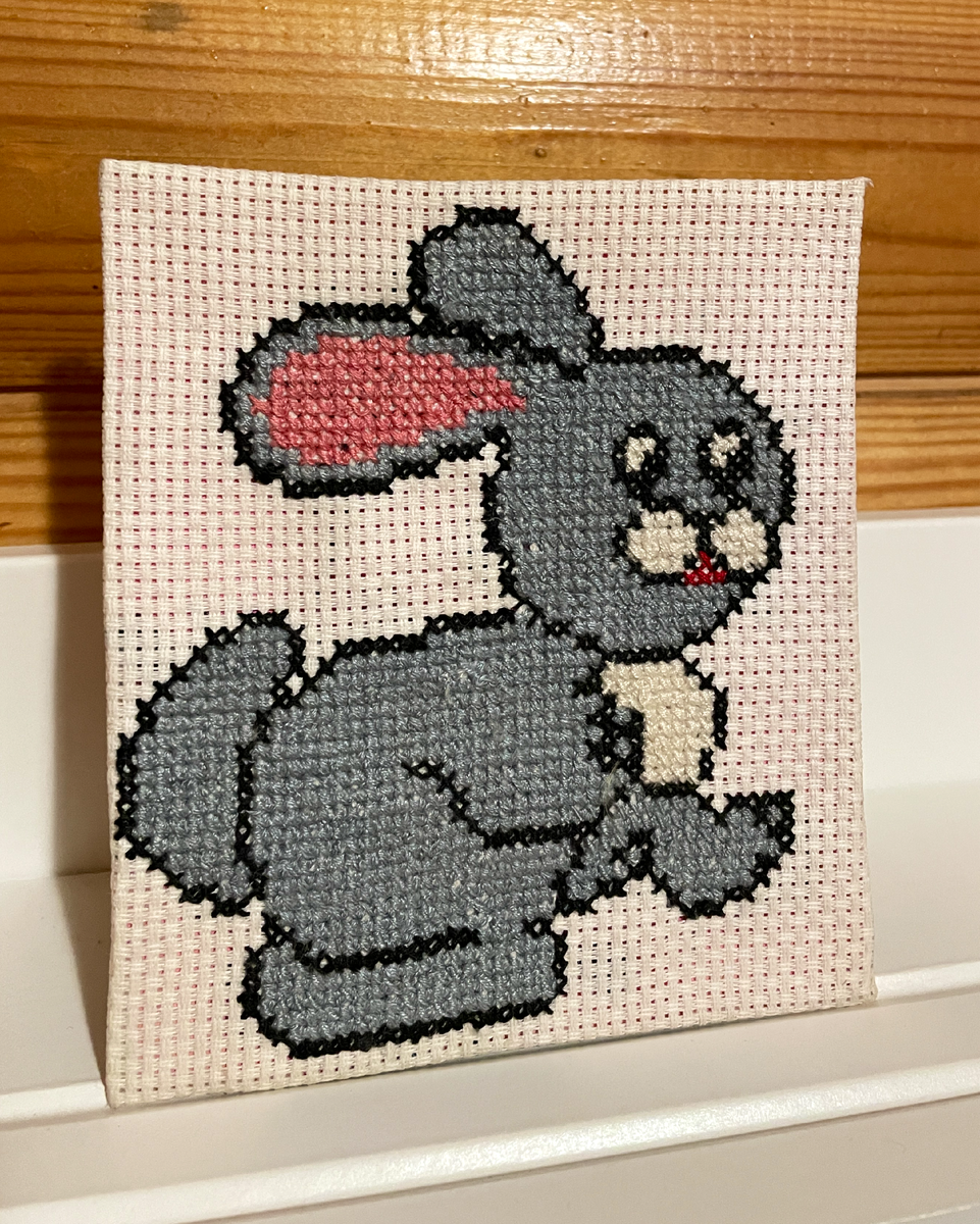Я не исключение. Хоть мое первое знакомство с вышивкой крестом произошло уже в век интернета, широким спросом он не пользовался и социальные сети, а следовательно и сообщества в них, казались чем-то ненужным и, порой, диким. Как же я познакомилась с вышивкой? На тот момент уже широко продавались наборы для вышивки (например тот же Риолис), которые когда-то гордо нам подарили мальчики на 8 марта в 5 класса. Помню как оскорбил меня этот подарок своим сексизмом (до сих пор не понимаю, почему девочкам что-то для рукоделия, а мальчикам кружки. Я кружками тоже пользуюсь). Одним словом, меня не заинтересовал подарок. В 6 классе на уроках труда у нас были занятия по рукоделию, в том числе вышивкой (технику мы выбирали сами). Я решила попробовать вышивку крестом, а в учебнике были максимально примитивные схемы зайчика и котенка, которые оказались мне по плечу.