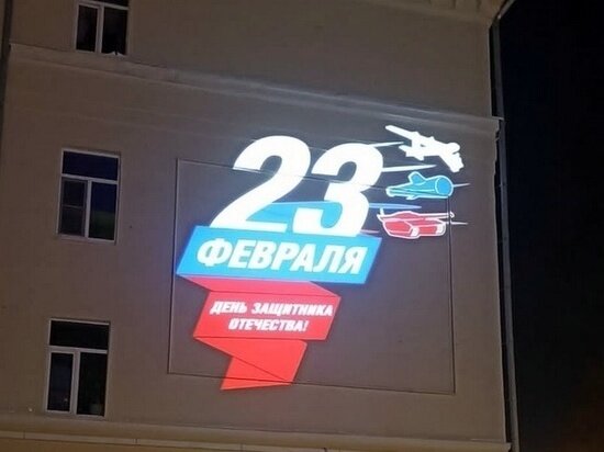 Световое поздравление с наступающим Днём защитника Отечества появилось стене дома по Троицкому проспекту, 64. Об этом сообщил глава Архангельска Дмитрий Морев.