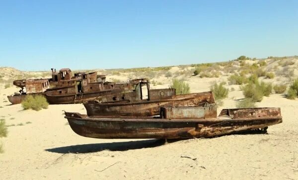 В Узбекистане есть населённый пункт в несколько десятков тысяч человек под названием Муйнак. В переводе - "мелководье". Впервые о нем заговорили в середине прошлого века. Этот город был одним из крупнейших портовых городов, где местные жители занимались рыболовством на Аральском море. Ключевое слово - был. На месте города - пустыня. Как же выживает город, если и моря нет, и земля плохая? Туризмом. Туризм здесь развит очень хорошо, и люди посещают Муйнак только из-за одного- посмотреть корабельное кладбище. В шестидесятые началось строительство мелиоративных каналов для орошения полей хлопчатника. По этой причине, море стало мелеть и со временем высохло. Хотя, если углубиться в историю, море было в пятёрке самых крупных морей на Земле, да и в водоёме водилось много видов рыб и разнообразная флора и фауна. Осталась местная достопримечательность- одинокие корабли посреди пустынных песков и жаркого солнца. Строительство Каракумского канала привело к экологической проблеме, и теперь бывшие