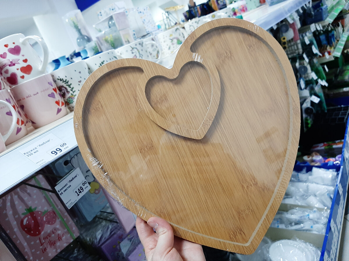 Начнём с остатков былой роскоши, как я понимаю, деревянного подноса-менажницы в виде сердца.
