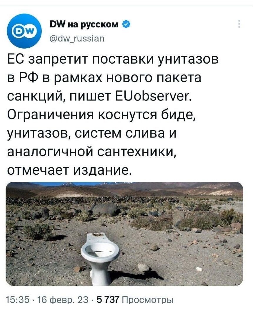 Запад решил ударить по самому больному - в новом пакете санкций запрет на поставки нам унитазов и биде