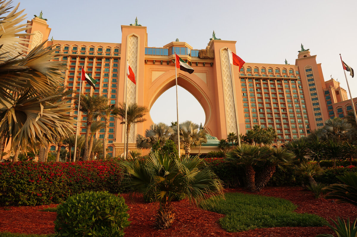 Когда приезжаешь в отель Atlantis The Palm 5* не зная подробностей о нем и его истории, думаю, масштаб оценишь, но не до конца. Постараюсь коротко рассказать. Кто регулярно бывает в Дубай, знает, насколько стремительно развивается город. Даже возвращаясь в него каждый год найдешь чему удивиться. Например, в 2021 году ярким поводом была выставка EXPO, в 2022 году - начало работы Музея Будущего, 2023-й год начался с открытия роскошного отеля Atlantis The Royal 5*. Отель Atlantis The Palm 5* открывался тоже ярко, было это в 2008 году, и он стал первым отелем на рукотворном острове - «Пальме». О “насыпных” островах в Дубай задумались в 90-е годы ХХ века. В эмирате осталось мало места для нового строительства на берегу. Создание острова Palm Jumeirah началось в 2001-м году. Он был первым из трех. Если бы остров делали круглым, то протяженность побережья была бы небольшой. Его построили в виде пальмового дерева, состоящего из ствола, 16 листьев и окружающего остров полумесяца, представляю