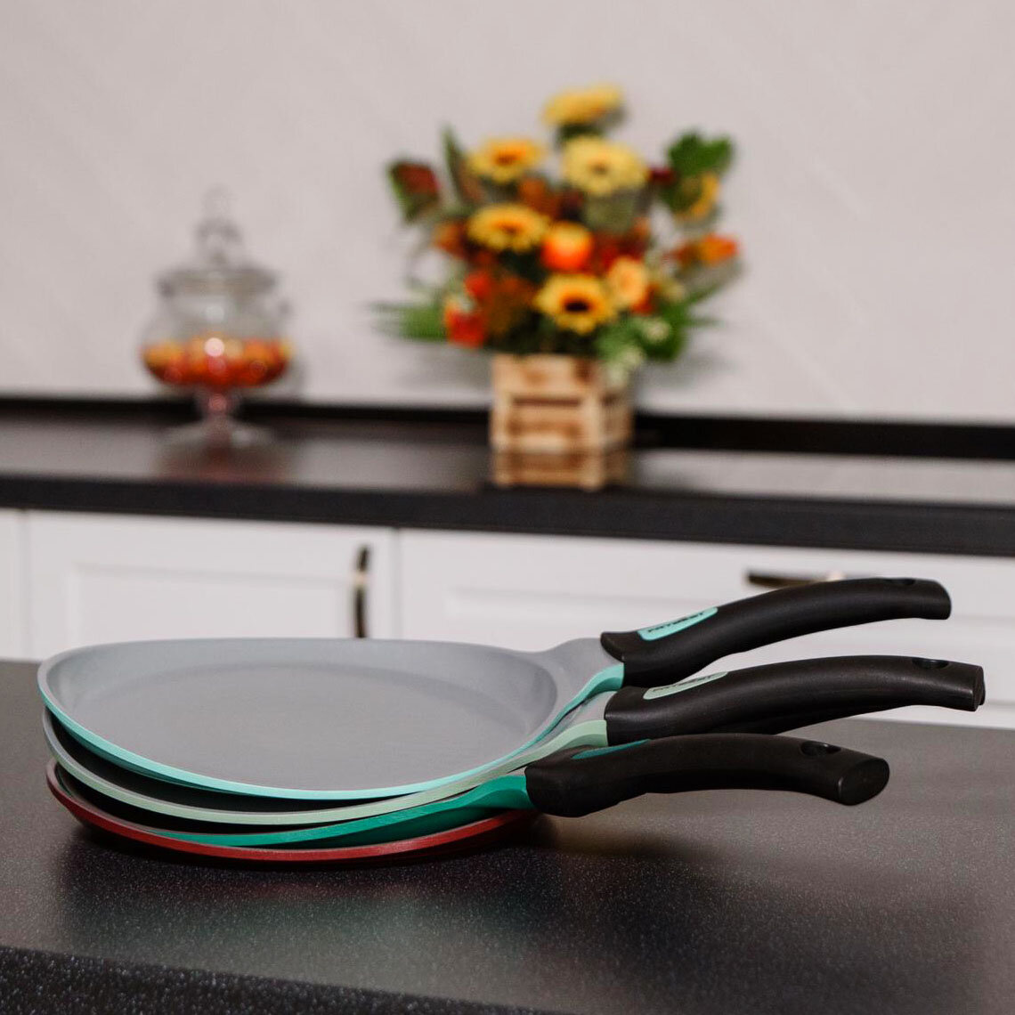 Попробуйте сами! В «Евродоме» вы можете выбрать сковороды для блинов и оладий ярких цветов, а также посуду Frybest!