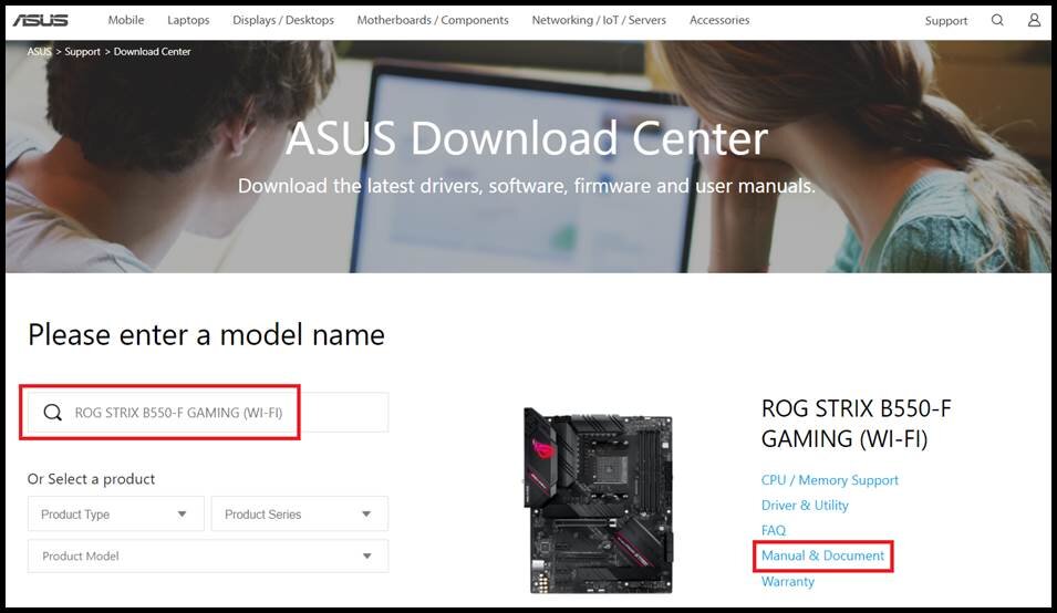 Если настройки BIOS не соответствуют норме или разгон и другие факторы вызывают сбой нормальной загрузки системы, можно использовать следующие методы для сброса BIOS. Перейдите на официальный сайт ASUS, чтобы проверить модель вашей материнской платы, чтобы подтвердить положение контакта CLRTC. Сначала загрузите руководство, соответствующее вашей модели материнской платы, из ASUS Центра загрузок. Введите модель -> щелкните Руководство и Документы. (Пример: модель ROG STRIX B550-F GAMING (WI-FI)) Примечание: Руководство можно получить: Найдите CLR 1. Используйте материнскую плату, чтобы очистить настройки BIOS, в зависимости от материнской платы, будут следующие методы: а. Двухконтактный тип CLRTC, пожалуйста, выключите питание и отсоедините шнур питания, прикоснитесь к двум контактам металлическим предметом, например отверткой, примерно на 5-10 секунд. После повторного подключения питания и загрузки нажмите и удерживайте клавишу удаления или клавишу F2, чтобы войти в BIOS для сброса. (П