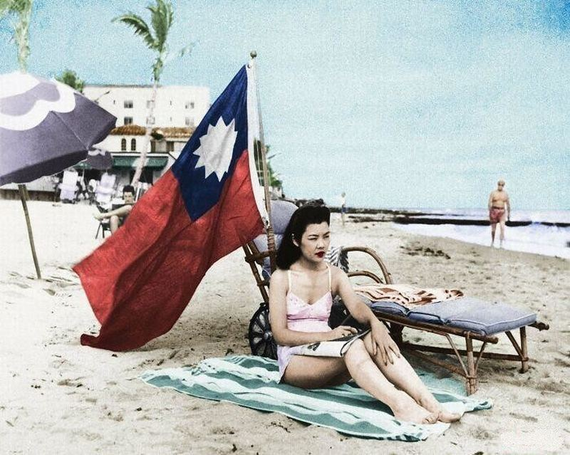 После начала войны между США и Японией Америку захлестнула волна нападений на людей азиатской внешности. На этой фотографии запечатлена Рут Ли, по происхождению китаянка, работавшая в одном из китайских ресторанов Майами. Опасаясь нападений, чтобы её не приняли за японку, девушка даже на пляж ходила с китайским флагом. Рут Ли родилась во Флориде, была гражданкой США и никогда не бывала в Китае. Снимок сделан 15 декабря 1941