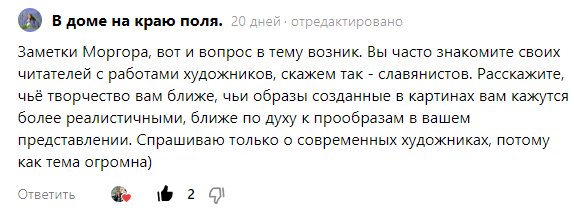 Сегодня отвечаю на такой вопрос: Если говорить о реалистичности и исторической достоверности, тут я сразу же назову Рогдая Росомаху (к сожалению, не знаю, как зовут этого художника «в миру»). Кажется, именно у него я впервые увидел безбородого и не патлатого Перуна, что сразу расположило меня к работам этого товарища. Правда, и у него встречаются и некоторые... скажем так, вольности (например, сразу вспоминается новодельная символика в иллюстрации, посвящённой Чернобогу). Но если посмотреть на работы Рогдая Росомахи, посвящённые историческим личностям, можно увидеть, какое внимание данный художник уделяет мелочам и соответствию «тогдашним» реалиям. Хочется особо отметить статью Рогдая Росомахи «Князь Нави», где он реконструирует образ Кощея на основе фольклорного материала и изображения с оковки ритуального рога из Чёрной Могилы. Но есть два художника-славяниста, которые мне близки, хоть с исторической точки зрения их труды вызывают большие вопросы. Именно их иллюстрации украшали книги