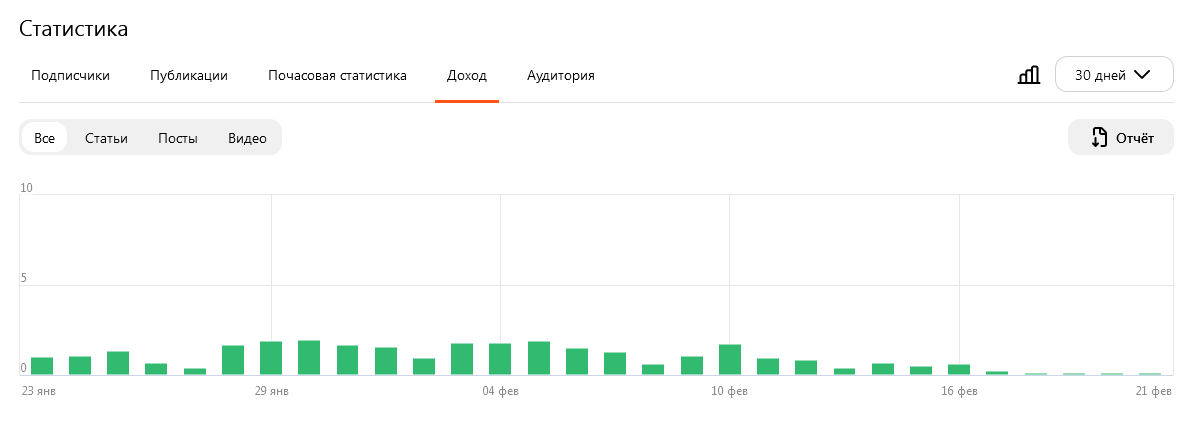 На графике видно, что с 18 февраля начислений по монетизации не было: А вот даты последних статей: И еще важный момент, который обнаружился в процессе: