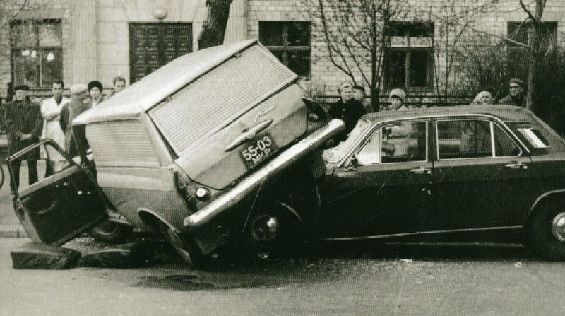 При серьезном повреждении автомобилей без ГАИ практически никогда не обходились. Страховку без справки об аварии все равно не выплатят – это все знали. А затребовать с виновника, если чья-то вина была очевидной, крупную сумму было практически нереально. Мода на вышибание из потенциальной жертвы денег любой ценой тогда еще не появилась. Да и личных квартир в собственности еще не было. Пострадавшего ждало хождение по мукам через ГАИ, Госстрах (если у него была страховка), а то и через суд, если виновник перехватывал инициативу в споре «Кто прав?» Как правило, тот же Госстрах первоначально назначал заниженную сумму компенсации – приходилось подавать новые обращения, взывать к разуму и так далее. Противнее всего было то, что до выноса окончательного вердикта по ДТП никакие ремонты не допускались – разбитая машина была обречена гнить именно в таком состоянии. Однако в целом эта цепочка работала!