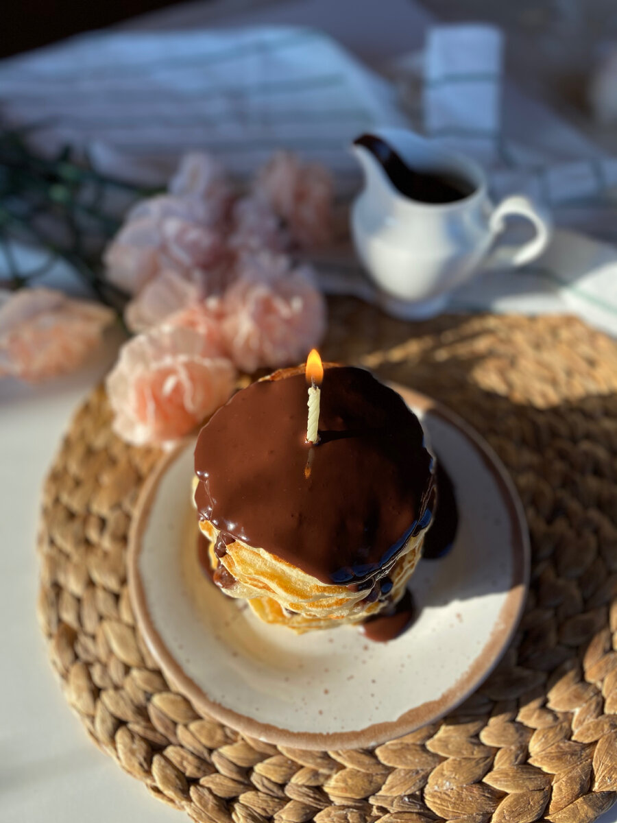 🥞Для соуса смешиваем растопленный в микроволновке шоколад и молоко (соус со современна загустеет, так что перед подачей подогрейте его в микроволновке)