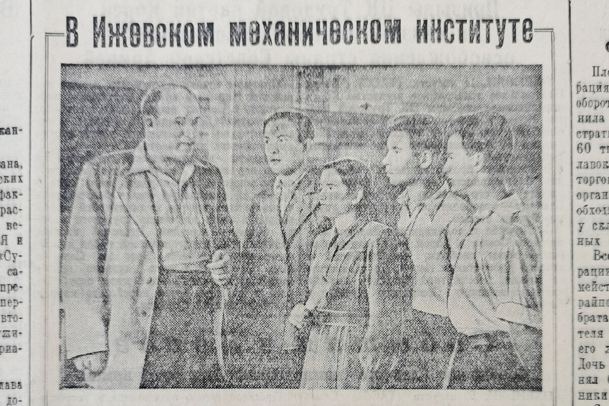 «Удмуртская правда», номер от 12 августа 1952 года. Заметка и фотография из приемной комиссии вуза.