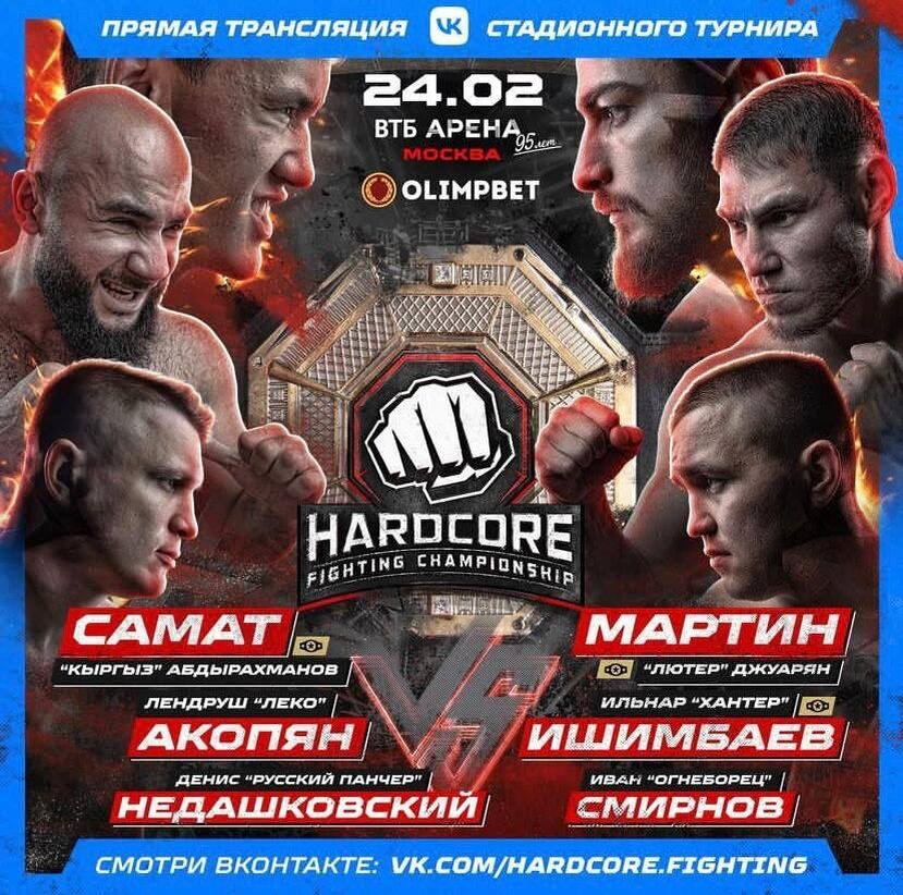 24 февраля на «ВТБ Арене» в Москве пройдет интересный турнир промоушена Hardcore FC с тремя титульными поединками. В главном бою вечера Самат Абдырахманов подерется с Мартином Джуаряном.