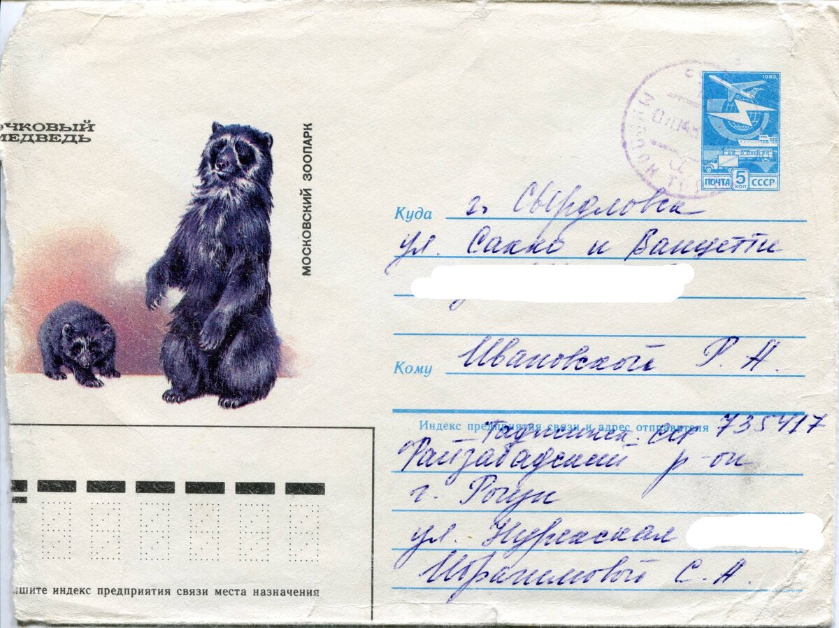 Мама рассказывала мне, что у ее отца был брат, Плотников Александр Афанасьевич, который в конце 60-х гг. уехал с семьей на строительство Нурэкской ГЭС в Таджикистан. У него было три дочери, и с одной из них мама какое-то время переписывалась. Александр Афанасьевич погиб в 1973 на той самой ГЭС, его жена умерла в 80-х гг. В 90-х гг. связь с родственниками была потеряна, и мама не знала, не только как живется ее сестрам в условиях распада СССР, но даже живы ли они. Когда я начала поиски родных, то ради интереса попыталась поискать их в соц. сетях. Поиски осложнялись тем, что мне была известна только их девичья фамилия и примерные годы рождения. Я понимала, что шансы невелики, но решила попробовать. Очень долго поиски не приносили результатов. Нет, не так. Результаты были. Я нашла, и немало, но это были не мои Плотниковы. И вот однажды, перебирая мамины бумаги, я нашла почтовый конверт с нашим прежним адресом, где в графе «адрес отправителя» было написано «Таджикская ССР». Фамилия была мн