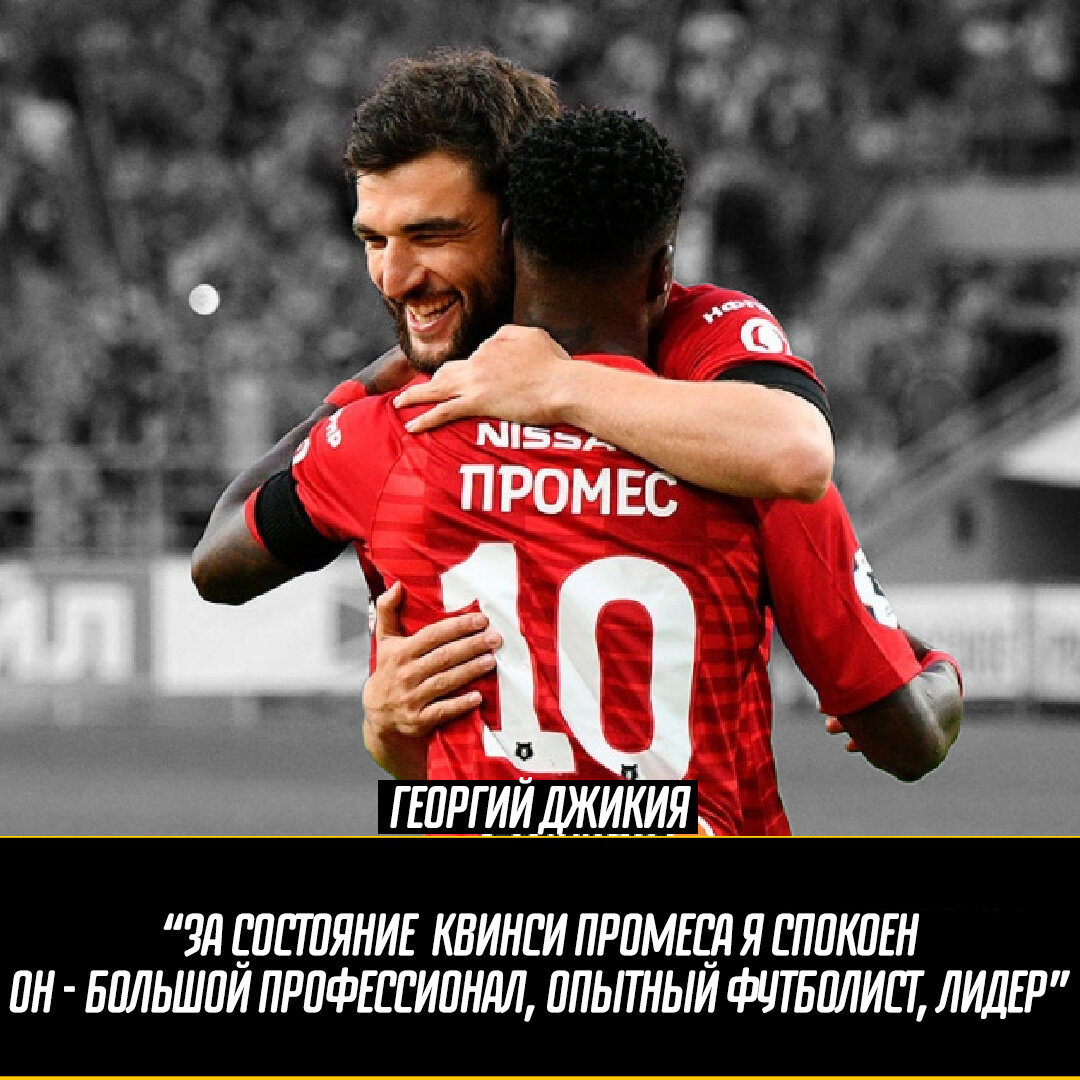 Я спокоен за его состояние. Он проводит в Москве очень хорошую работу. Понятно, что индивидуальные тренировки и работа в коллективе — это огромная разница. Надеюсь, он быстро наберет тонус. Квинси — большой профессионал, опытный футболист, лидер. Он понимает всю ответственность», — заявил Джикия пресс-службе красно-белых.