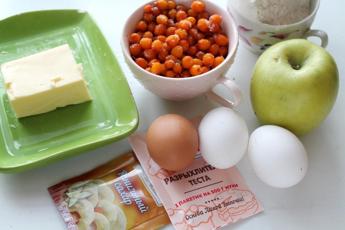 Весенний пирог с облепихой и яблоком. Всего 25 минут в духовке, и вкуснейший домашний десерт к чаю готов