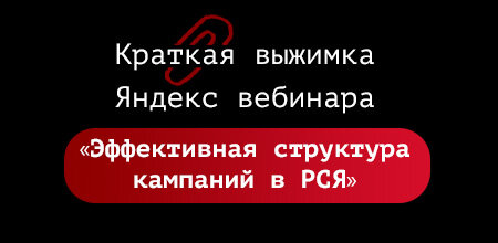НЕДАВНО ЯНДЕКС ПРОВОДИЛ ВЕБИНАР ПО ТЕМЕ "ЭФФЕКТИВНАЯ СТРУКТУРА КАМПАНИЙ В РСЯ"