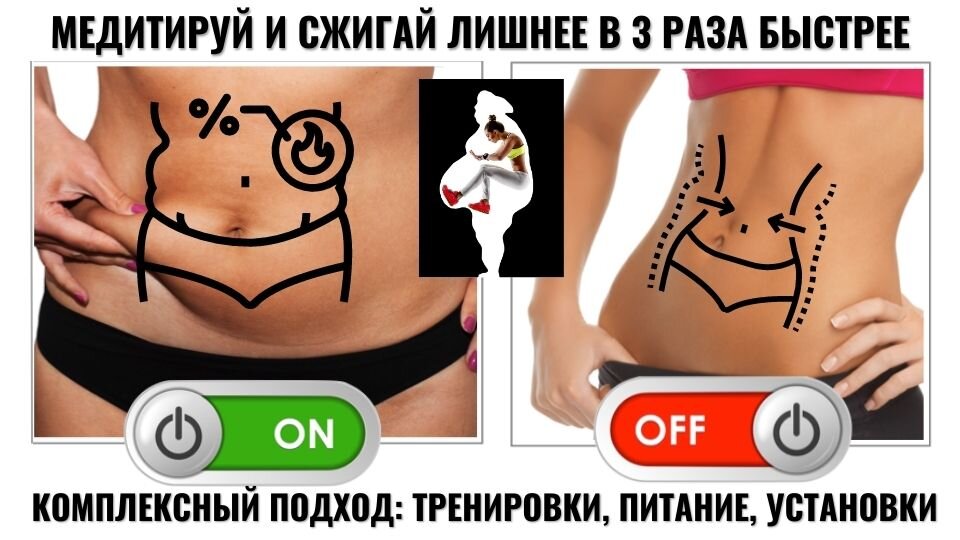 Медитация на фигуру мечты, на снижение веса, сжигание лишнего, на моделирование желаемых форм и параметров — моя любимая тема в тренингах. Это работа на уровне Подсознания. Где пока что нет программы потрясающей фигуры и много деструктивных пазлов, которые создали проблемные зоны, сковали тело и ум. Вы много лет убеждали себя, что быть такой норма. Ведь вокруг — женщины с лишним весом, букетом проблем и даже заболеваний за 30, 40 и 50.