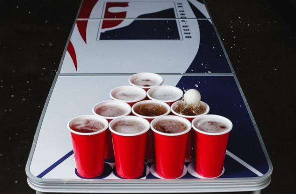 Две команды (число игроков не ограничено) расставляют с двух концов стола в виде треугольника по 10 пластиковых стаканчиков объемом 500 мл. В стаканы наливается пиво, игроки берут шарики для пинг-понга и по очереди бросают их в стаканы другой команды. Если игрок не попал, ход переходит противоположной команде. Игрок команды, в чей стакан залетает шарик, должен выпить пиво и отставить стакан в сторону. Возможен и обратный сценарий — пиво пьют те, кто попадает в стакан. В таком случае побеждает команда, которая выпила весь запас противника.