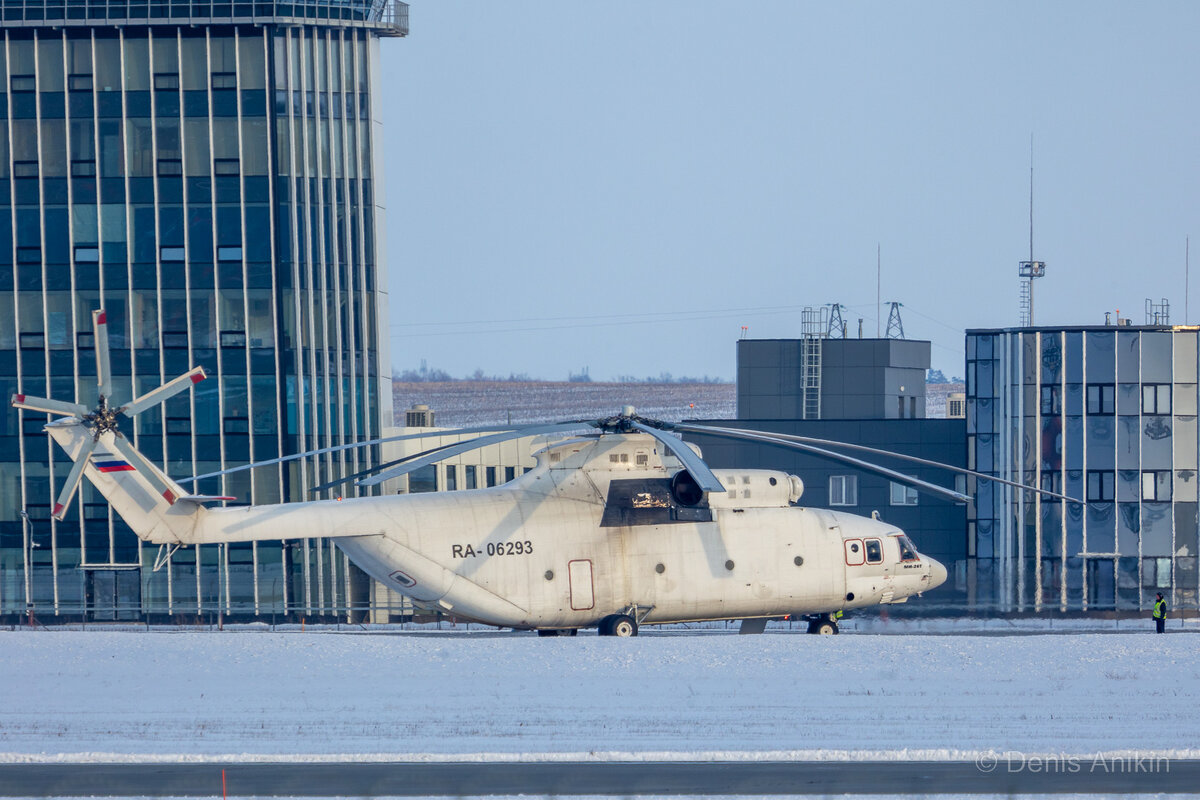 Вертолеты этого типа в аэропорту Гагарин иногда появляются, но застать мне их раньше не удавалось, а вот на днях всё сошлось и удалось посмотреть и поснимать этот вертолёт. И даже сделать небольшое видео. Ми-26 модификации "Т" авиакомпании "UTair" тем морозным утром готовился вылететь из международного аэропорта "Гагарин" (Саратов), простояв тут чуть более суток. Вертолёт Ми-26 созданный конструкторским бюро Миль, является самым крупным серийно выпускаемым транспортным вертолётом с грузоподъемностью 20 тонн. По рулежной дорожке вертолёт направляется к взлетной полосе. На таких размерах хорошо видно как сильно наклоняется несущий винт, чтобы обеспечить движение вперед. И вот выкатившись на ВПП и подняв клубы снега вертолёт разгоняется и отрывается от земли Моща! Вертолёты этого типа выпускаются в Ростове-на-Дону с 1980 года на предприятии «Роствертол», на данный момент произведено более 330 штук, треть которых продолжают эксплуатироваться по всему миру выполняя различные задачи. И небол