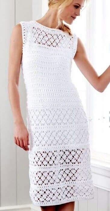 Летом хочется чего-то воздушного, дышащего, легкого и красивого. Лучше всего на эту роль подходят вязаные платья. А если они выполнены крючком из хлопковой или льняной пряжи, то кружевная красота, легкость и гигроскопичность обеспечены. Простое летнее платье без рукавов с миксом красивых узоров. Выбирайте белую пряжу для большей выразительности узоров. Такое платье желательно посадить на чехол. Если есть возможность и желание, подберите контрастный к основному цвету чехол - узор заиграет интереснее. Для любителей мотивов. Круглые мотивы собираются в шикарное кружевное полотно этого платья. Кропотливая работа дает великолепный результат. Еще мотивы. Совсем несложные нежного розового цвета. Платье-футляр с короткими рукавами производит впечатление цветущей клумбы. Сарафан выполнен наклонными дорожками. По центру - вязка с розами в филейной технике. А-силуэт сарафана подчеркнет стройность своей обладательницы. Летнее платье узором "проще некуда". Вяжется быстро и несложно. Хорошая модель