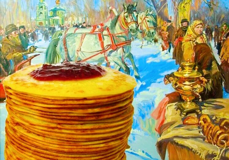 Не знаю как другие, но я с самого детства люблю этот праздник. В нашей семье не соблюдали пост, нам не нужно было наедаться впрок жирной пищей, но блины мама в любом случае пекла. Естественно таких недельных гуляний, которые описаны в исторической литературе в наше время в городах не делают, но в последние дни Масленицы - субботу и прощённое воскресенье, обычно устраивают различные мероприятия с выступлениями скоморохов и сжиганием чучела. Мне всегда было интересно, почему этот праздник называют именно так и я полезла в интернет за информацией. Говорят есть две версии. По первой, Масленица названа так ещё с дохристианских времён, потому что люди пытались задобрить, умаслить Солнце, (Ярило) которому поклонялись, чтобы затем весь следующий год жить в достатке и радости. По второй версии такое название празднику дали уже во времена христианства, потому как перед началом Великого поста людям разрешалось есть много масла, молочных и мучных продуктов, чтобы быть сытыми и сильными перед тем